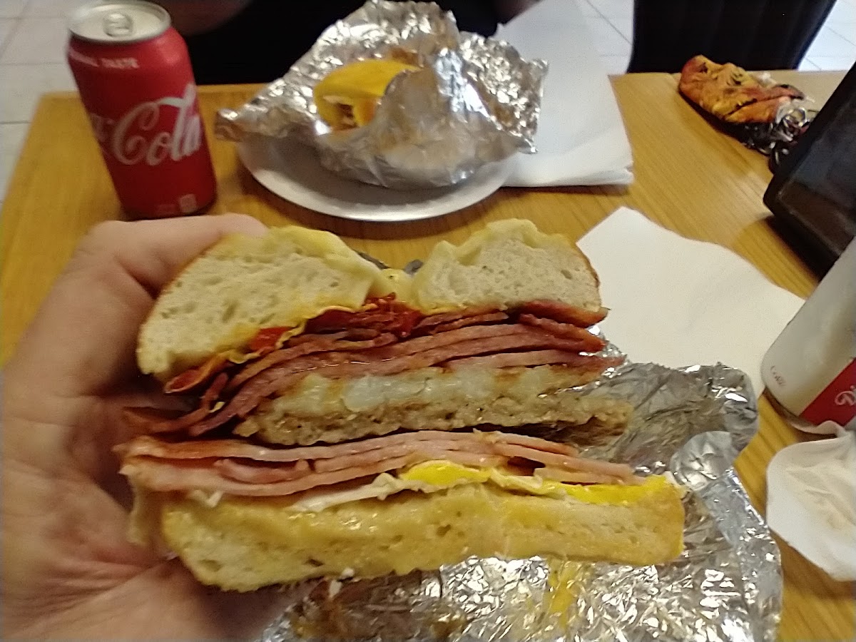 I always like to try a new spot more than once which I did here. My first visit was on a Saturday and the staff is SUPER friendly and welcoming. My first look around at the dining area is that it needs a fresh coat of paint, some deep cleaning and some updated seating. The floors could use a good polishing because it comes off a bit overlooked. I ordered 3 BEC bagels and a cannoli because they advertise that they are homemade. Everything was so good. The bagels were toasted, soft, a good chew and just very tasty. (Jalapeño, everything and egg) The cannoli was made to order and it was good. I have had better but I thought it was decent for a bagel joint. I was so excited to find a bagel spot close by. Next visit was the next day and we ordered the same thing but this time tried a Philly cheesesteak as suggested by the woman at the counter. Once again staff was very nice and friendly. The Philly cheesesteak had a great taste and full of flavor. The 2 BEC bagels were not toasted as asked and the portion was half of what we had received the previous day. I was given the wrong flavor bagel and it just didn’t have the same effort from the day before. The cannoli this time around tasted stale and the filling had no chocolate chips and it was a bit disappointing overall. My suggestion would be to work on cleanliness, consistency and making sure orders are made as the client asks because in this day and age and the way things are so expensive it could make a world of difference.